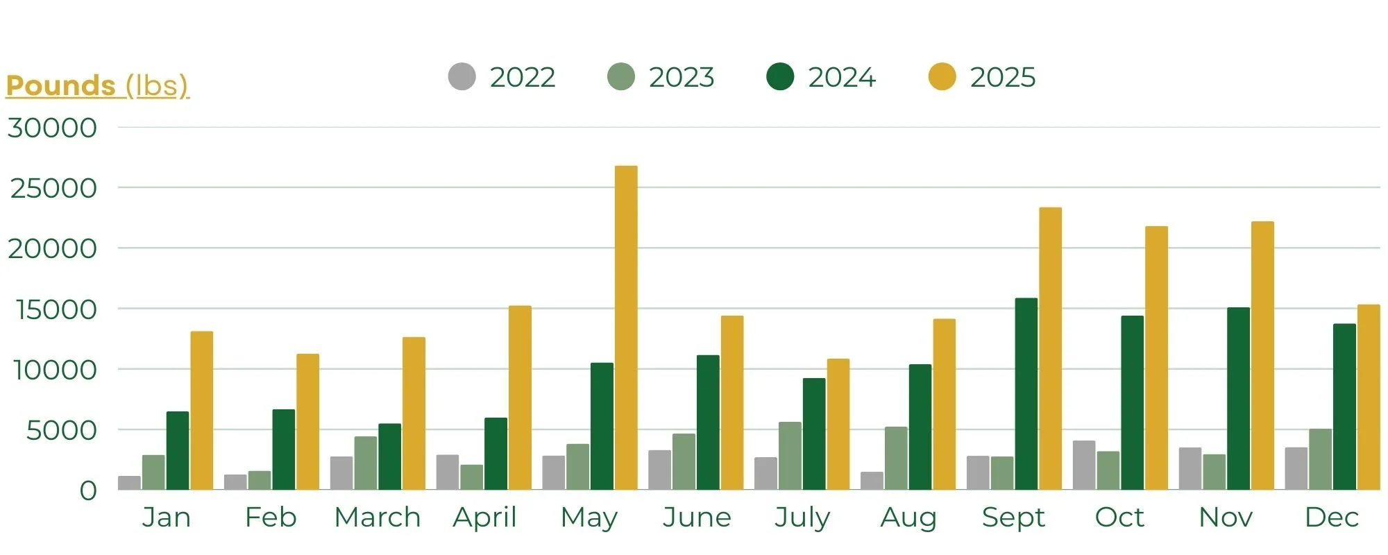 Big News! In 2025 we rescued 208,085 lbs of surplus food!